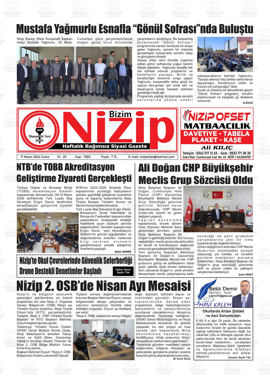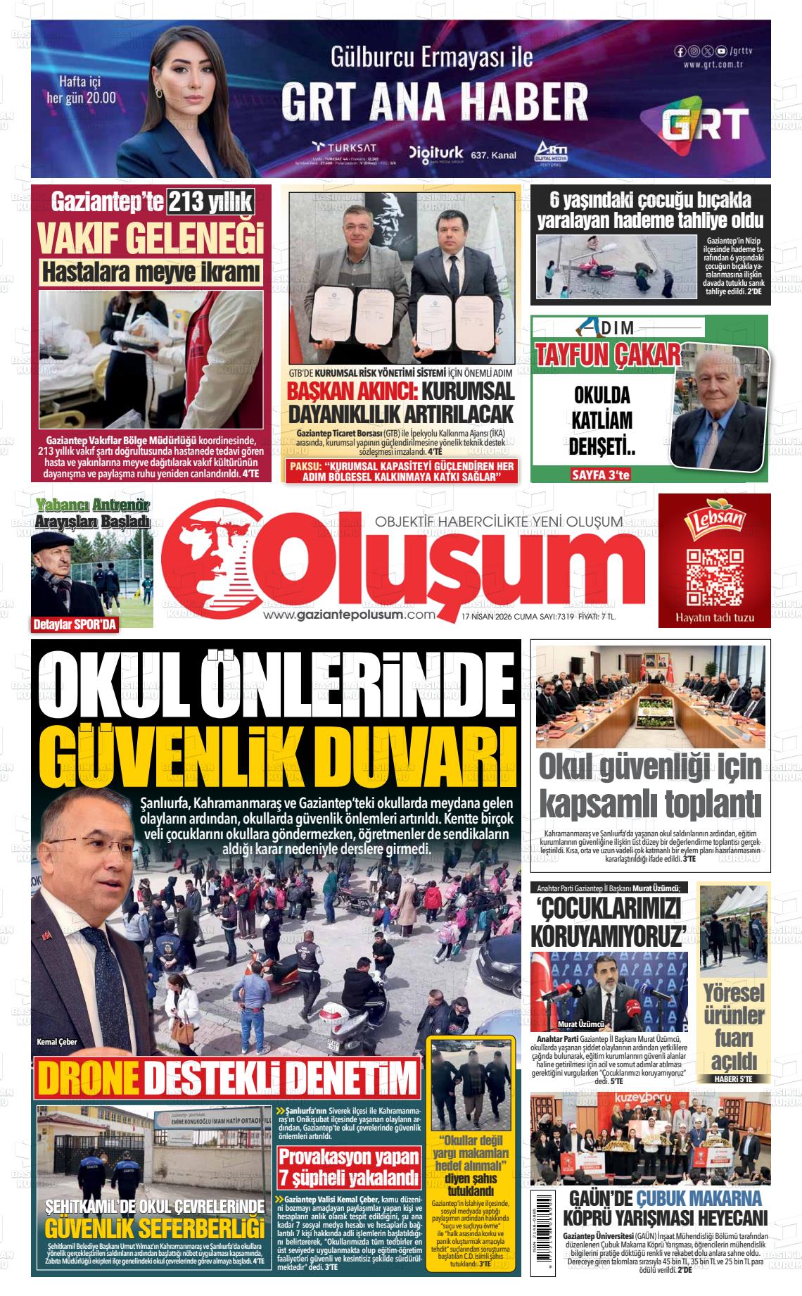 Gazİantep Yerel Gazeteleri 17 Nisan 2026, Cuma Günü Manşeti