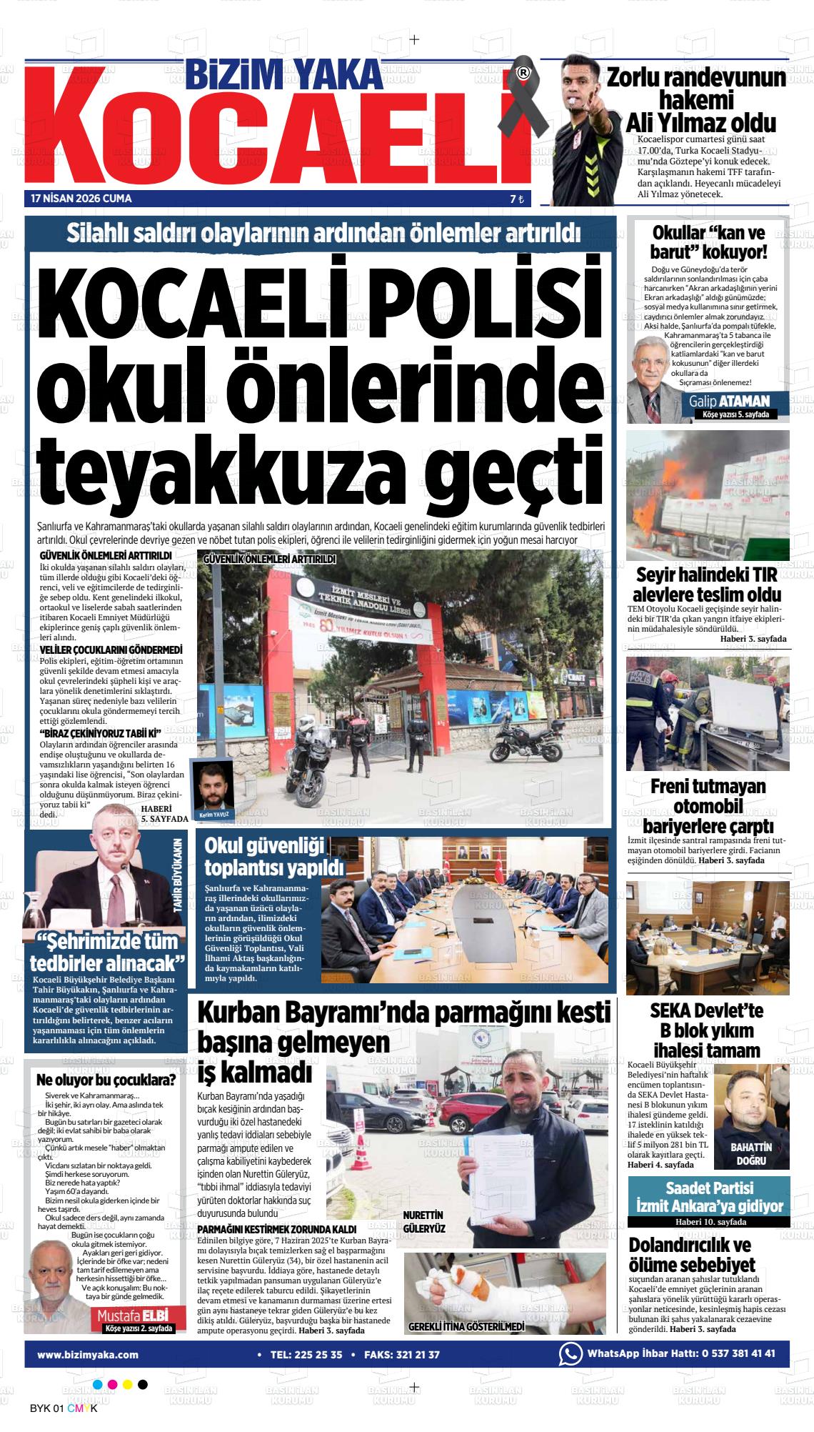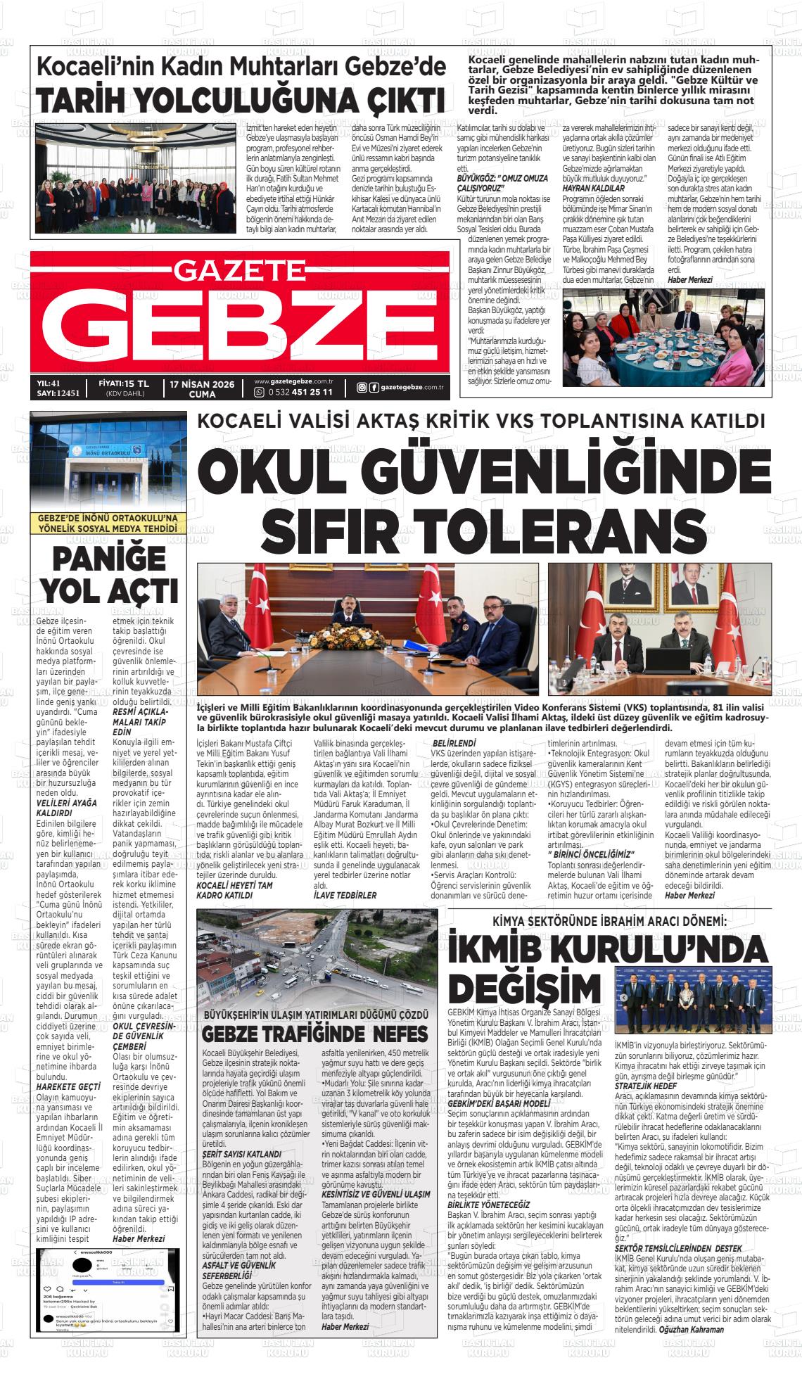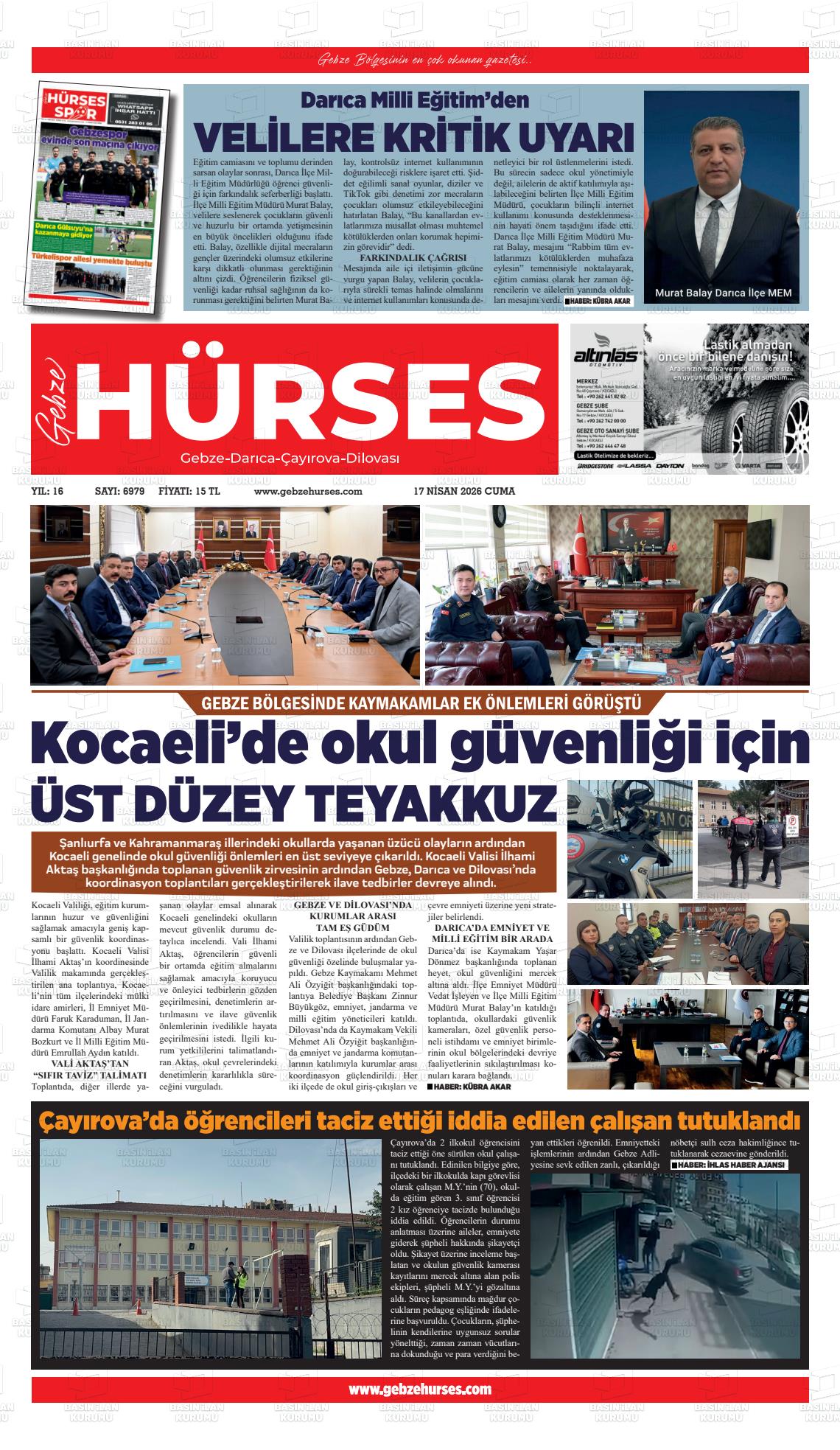 Kocaelİ Yerel Gazeteleri 17 Nisan 2026, Cuma Günü Manşeti