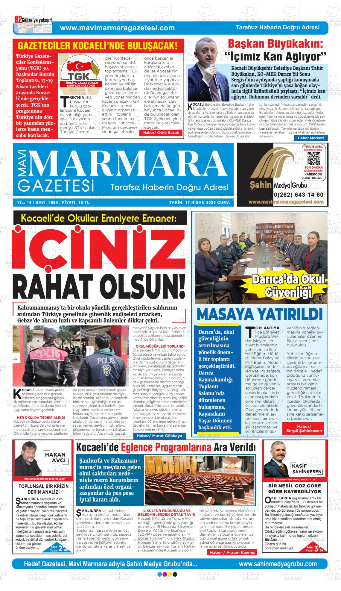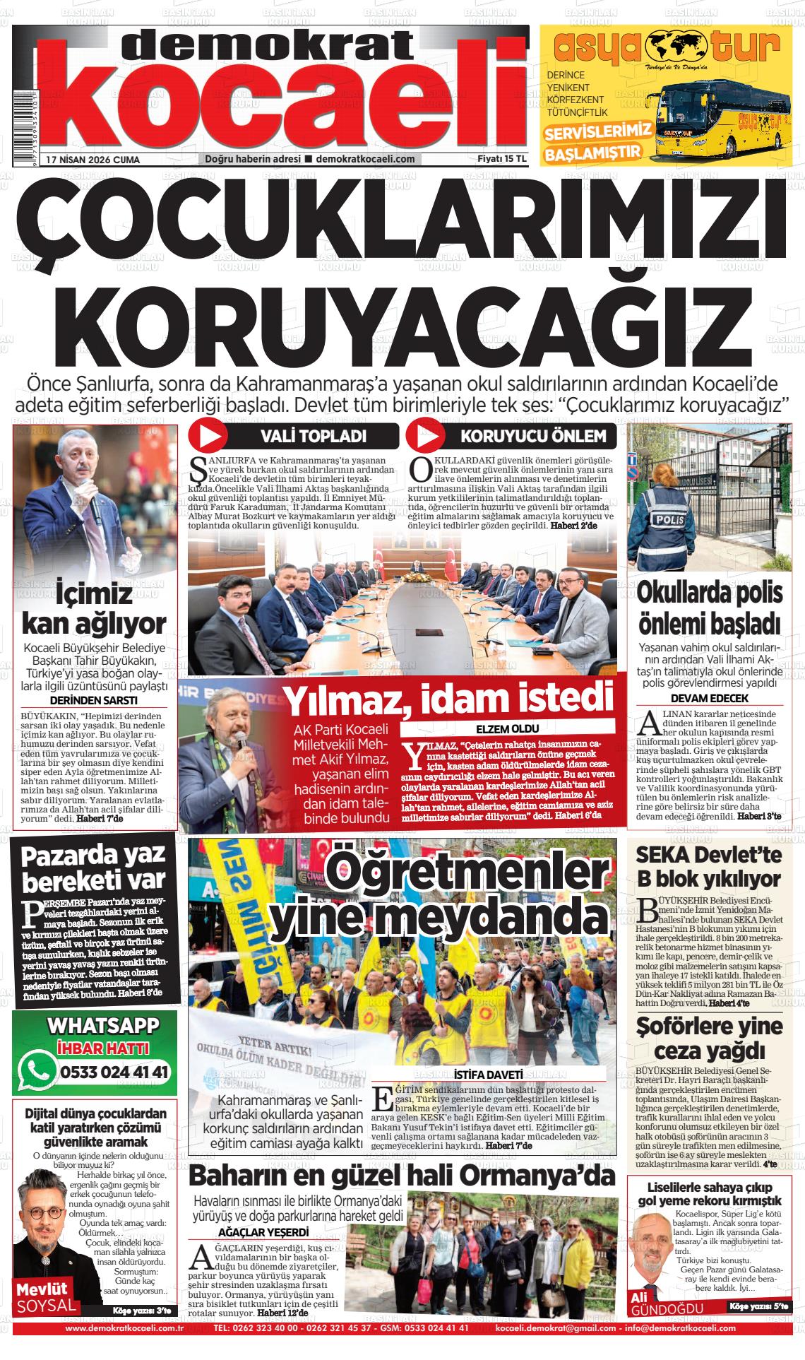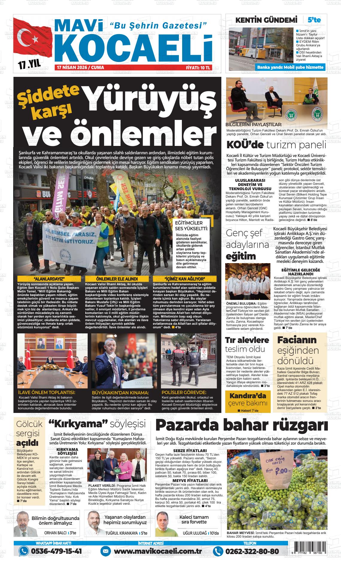 Kocaelİ Yerel Gazeteleri 17 Nisan 2026, Cuma Günü Manşeti