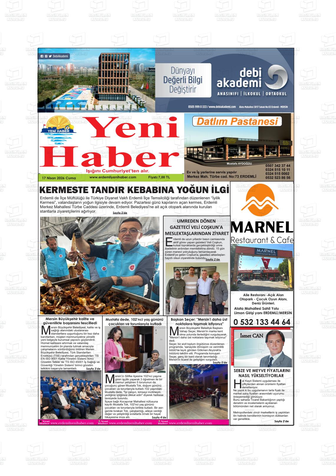 Mersİn Yerel Gazeteleri 17 Nisan 2026, Cuma Günü Manşeti