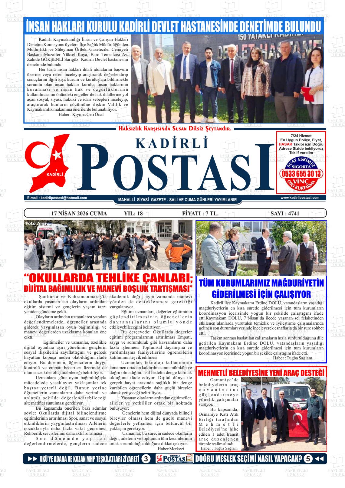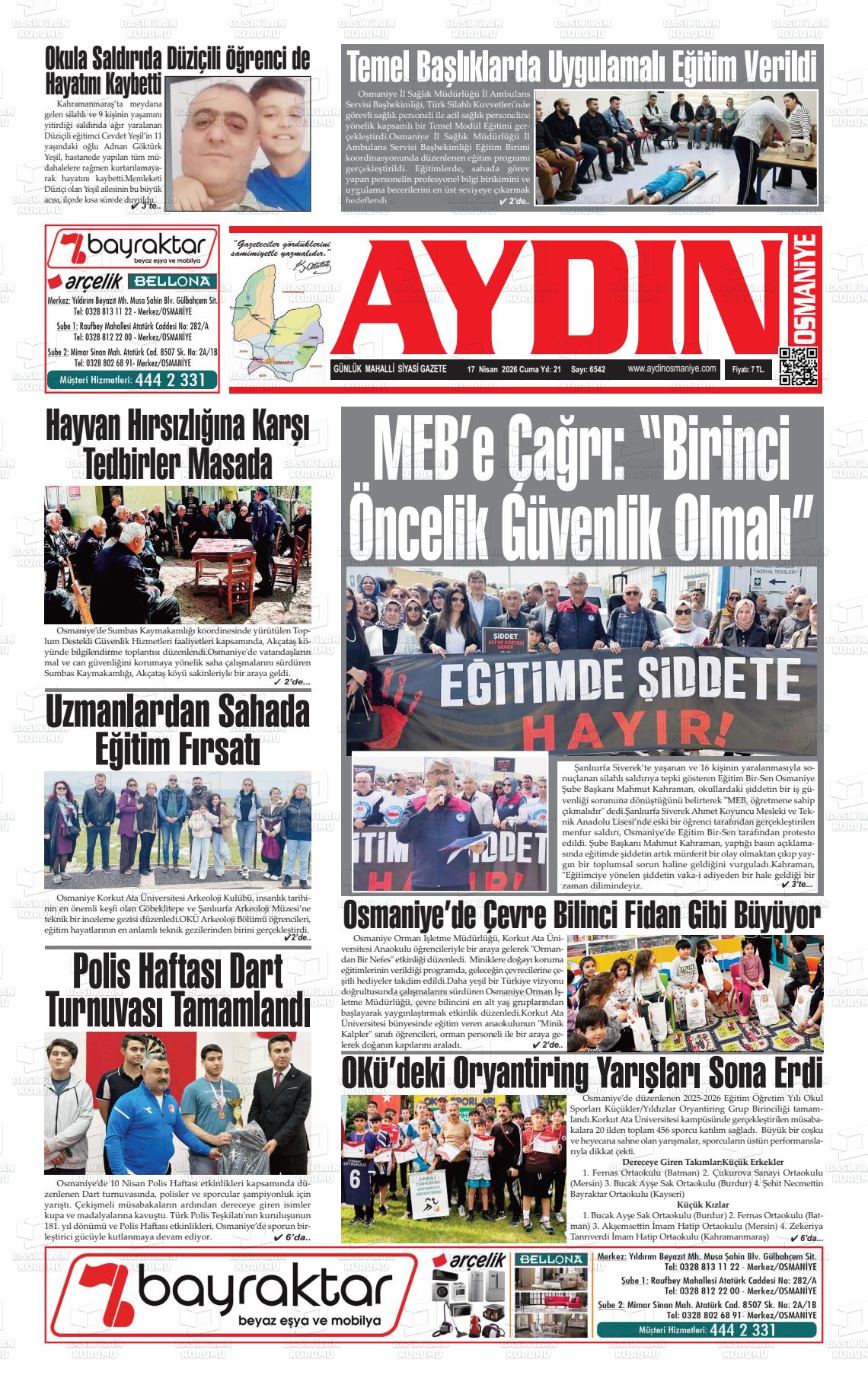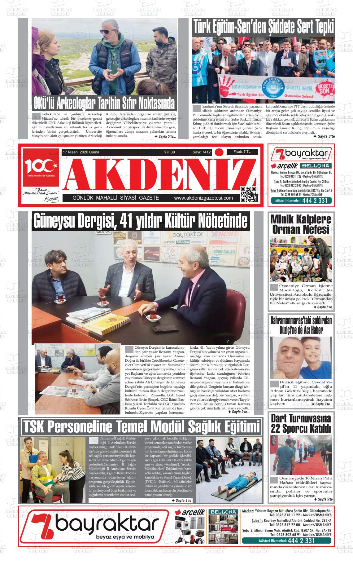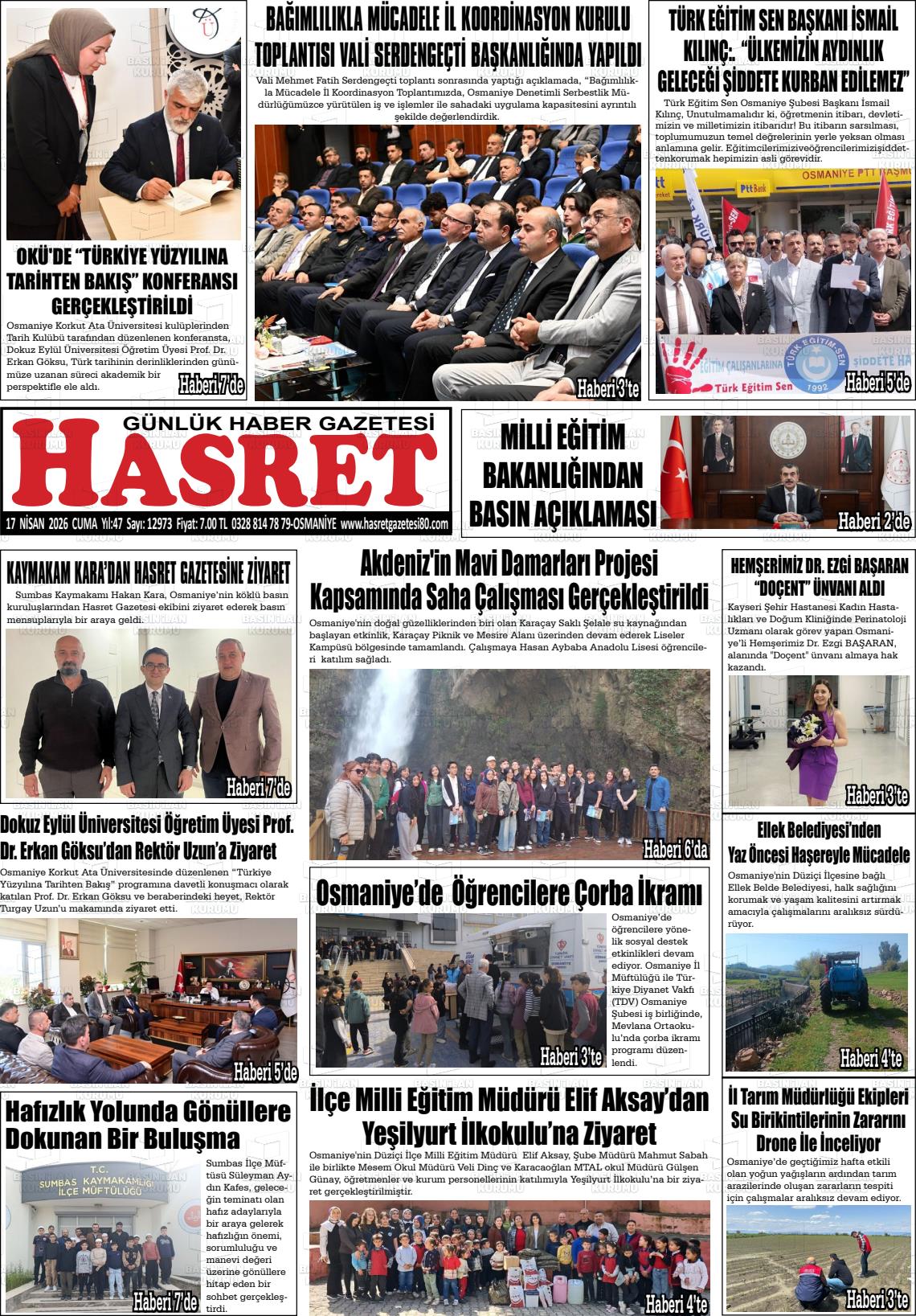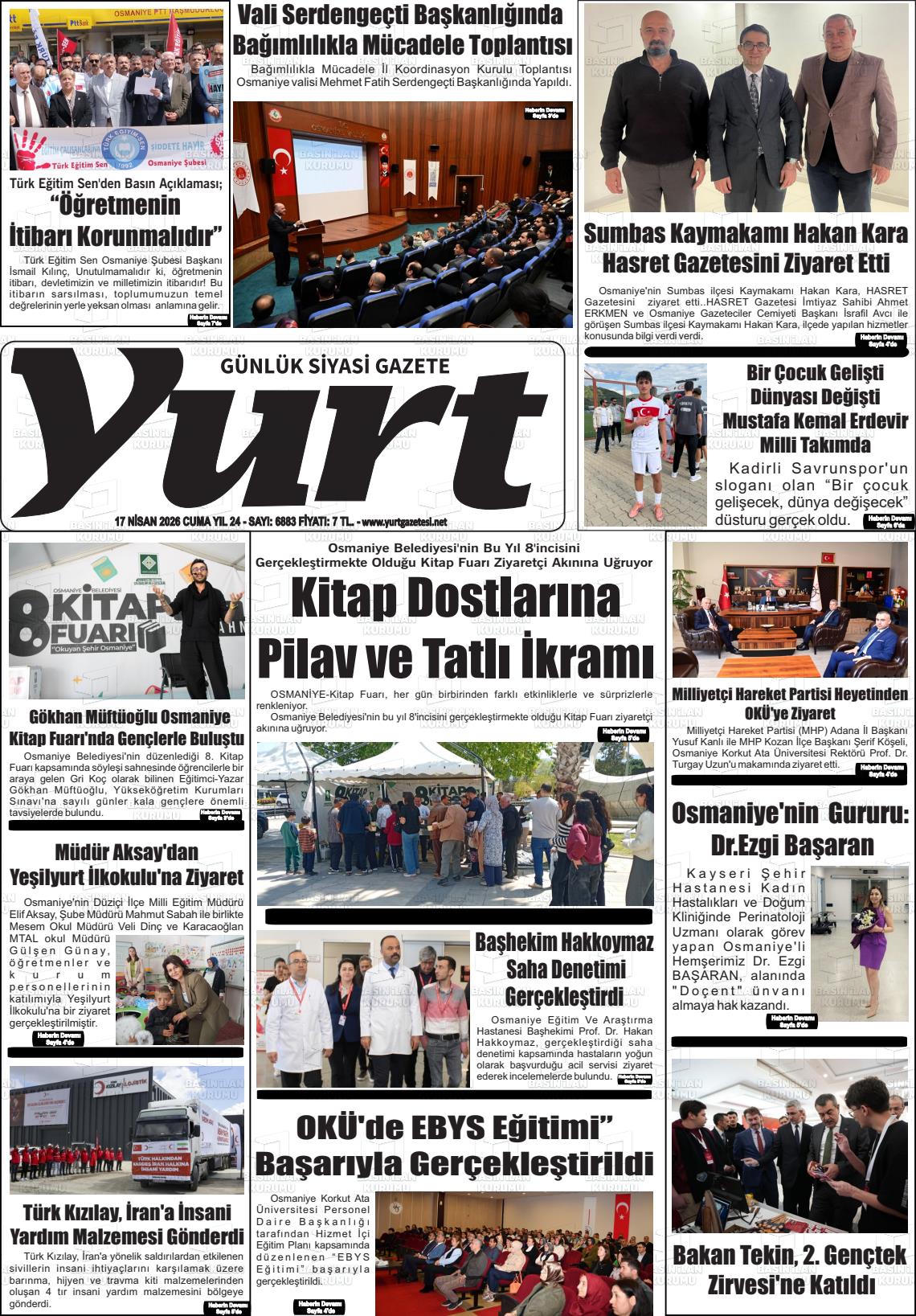 Osmanİye Yerel Gazeteleri 17 Nisan 2026, Cuma Günü Manşeti