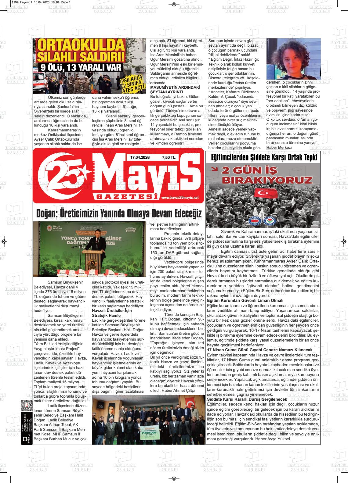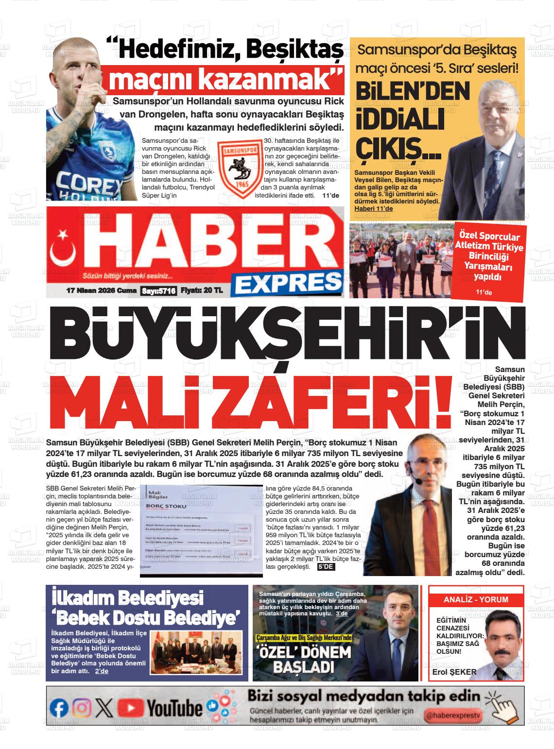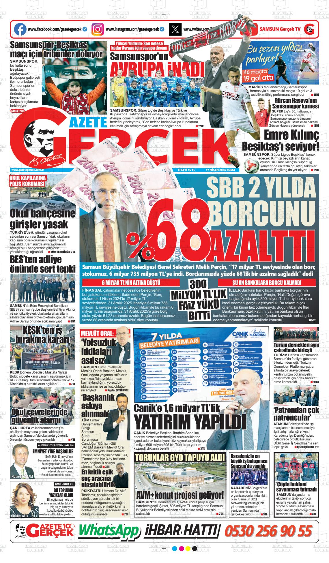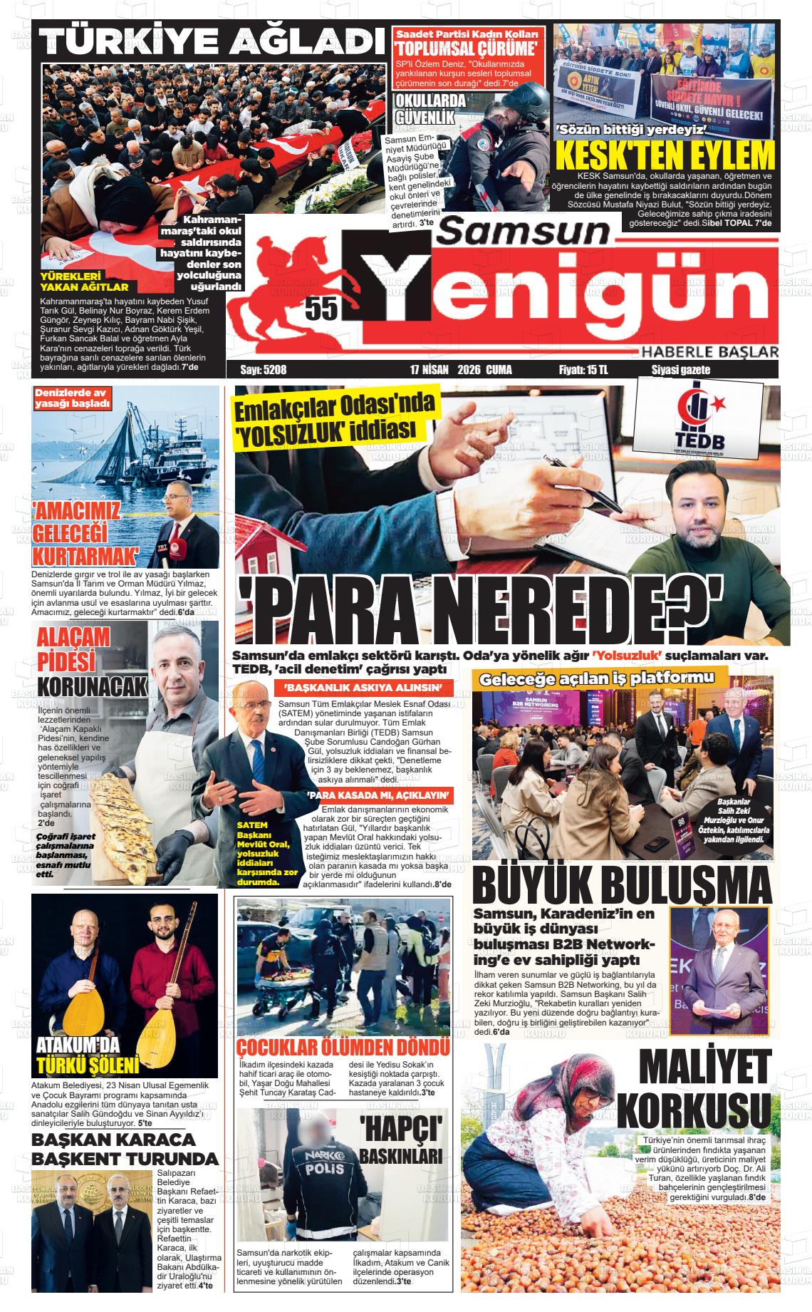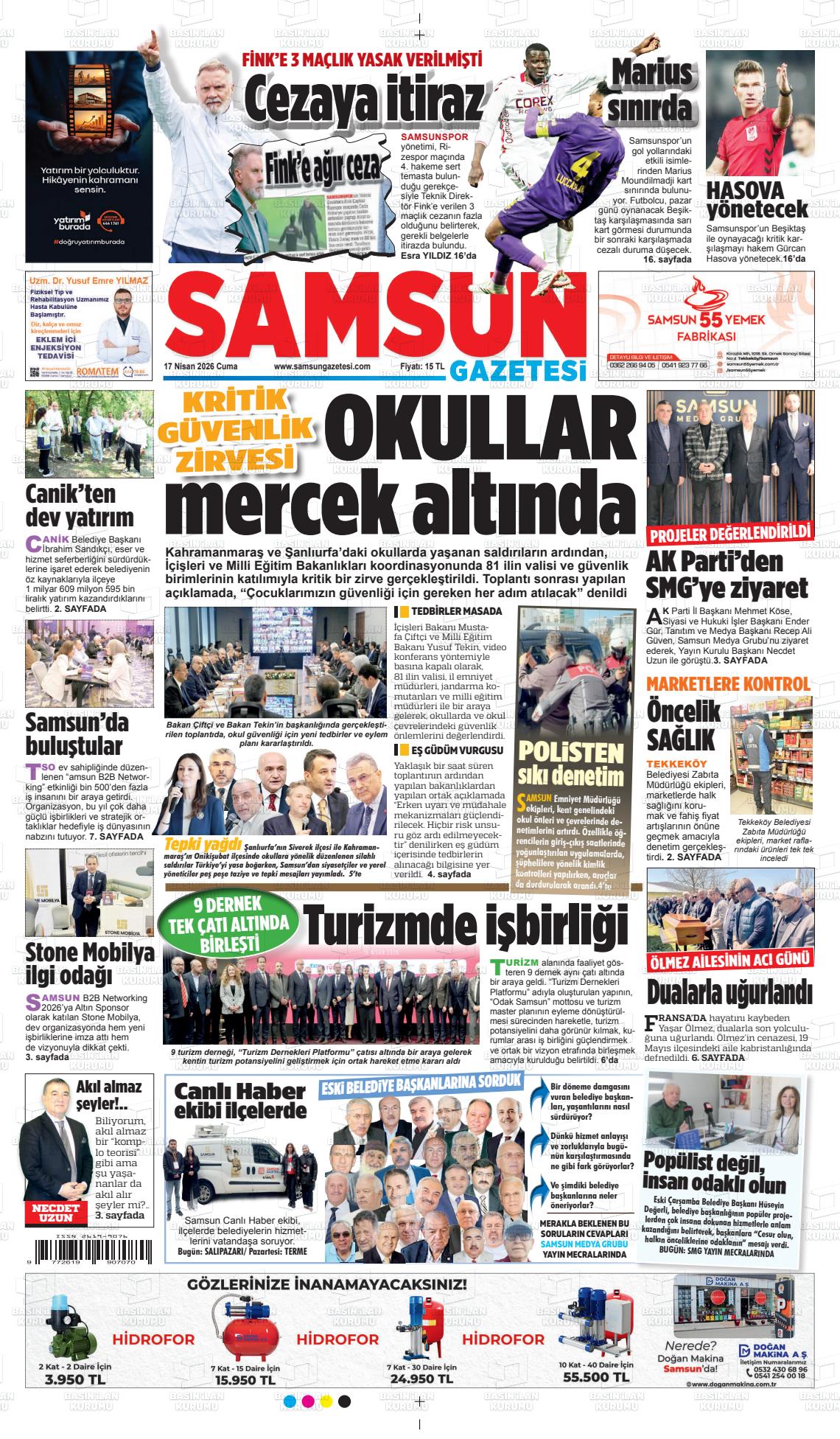 Samsun Yerel Gazeteleri 17 Nisan 2026, Cuma Günü Manşeti