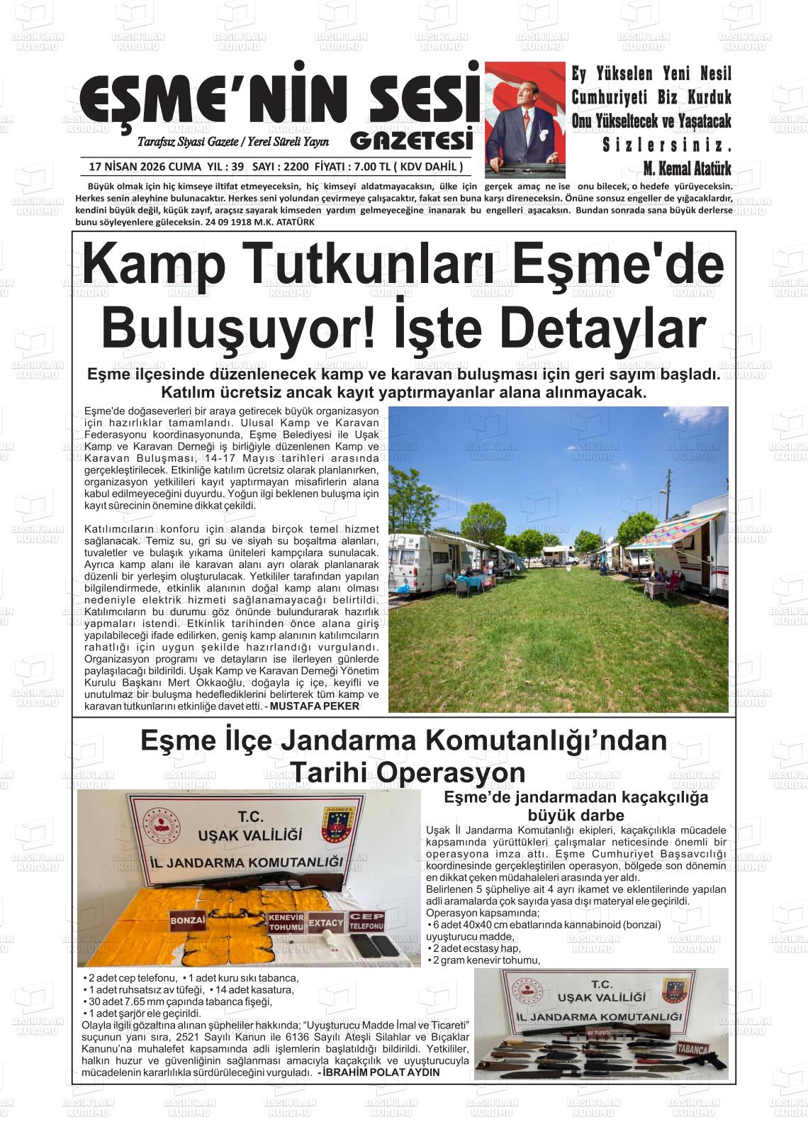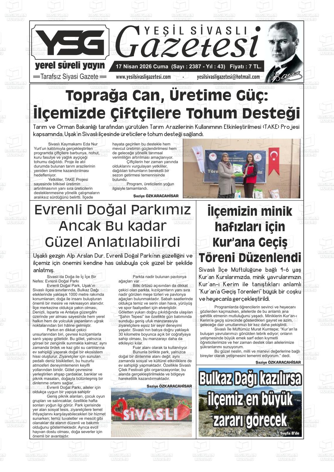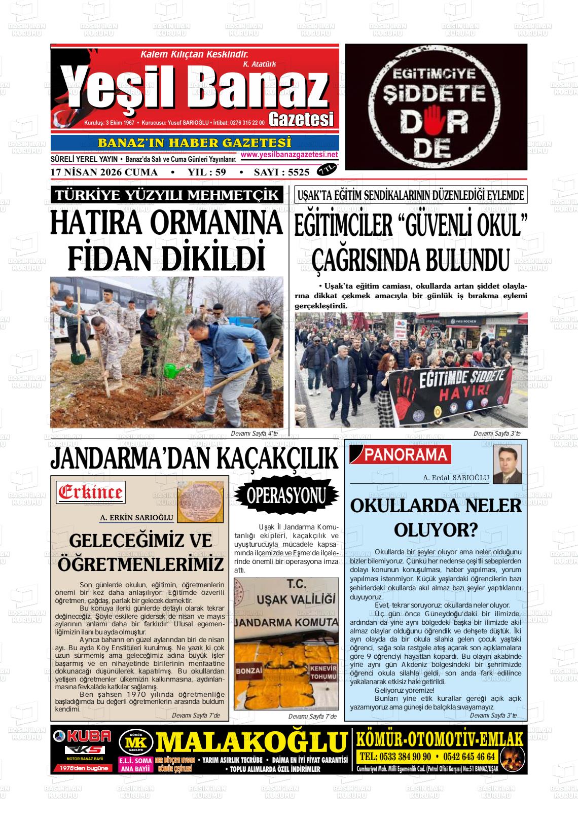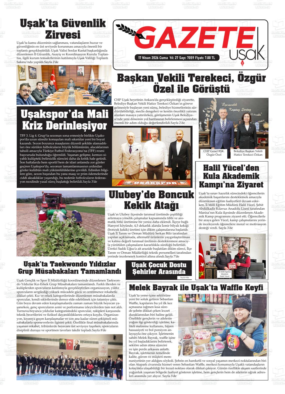 Uşak Yerel Gazeteleri 17 Nisan 2026, Cuma Günü Manşeti